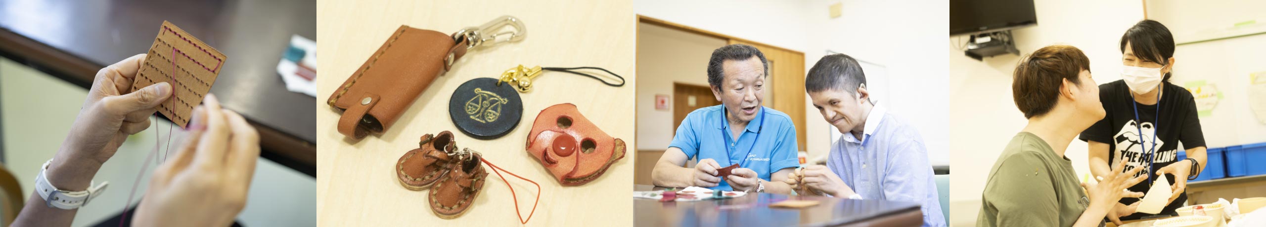 革製品の製作他、ビーズ工芸・缶バッジ・缶マグネット・陶芸等の制作から販売をしていて、売り上げの一部を工賃として利用者のみなさんにお支払いしています。
